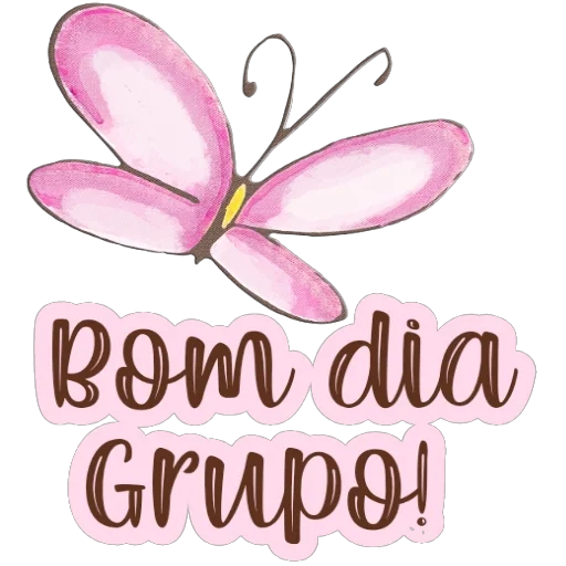 Uma borboleta rosa com asas abertas e o texto 'Bom dia Grupo!' em letras marrons com contorno rosa.
