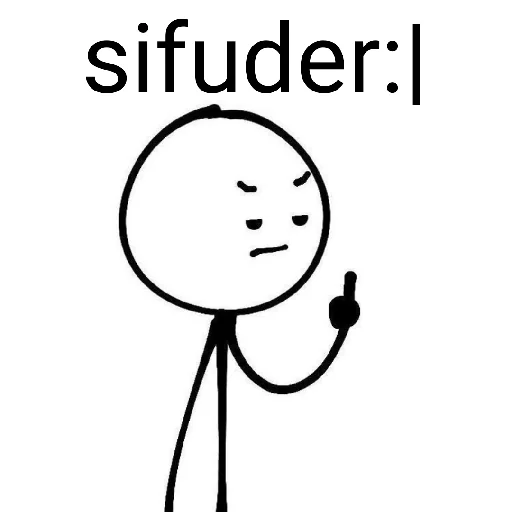 Um desenho simples de uma pessoa com expressão de desconfiança ou raiva, com a legenda 'sifuder:' em cima. A pessoa está com a mão levantada e parece estar reclamando.