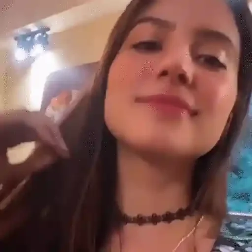 Uma jovem mulher com cabelos castanhos e um colar de contas marrons olha para a câmera com uma expressão neutra.
