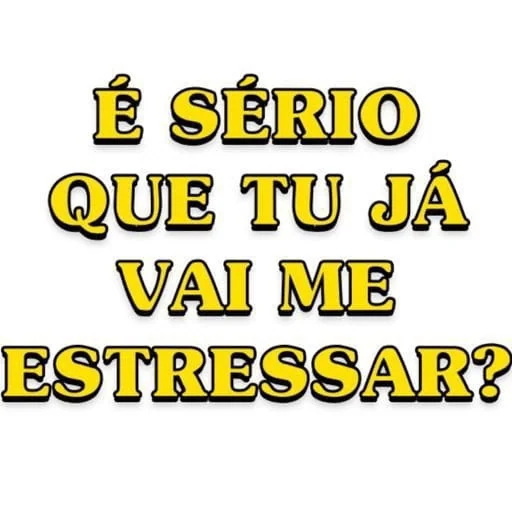 Um texto em amarelo com sombra preta que diz 'É sério que tu já vai me estressar?'