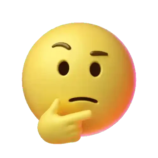 Emoji amarelo com expressão pensativa, mão no queixo e sobrancelhas franzidas.