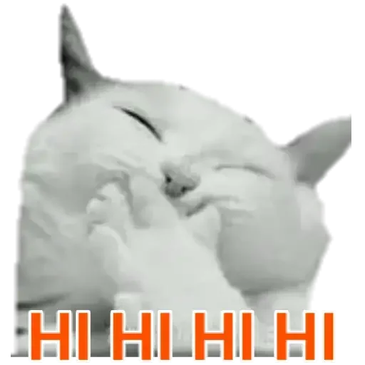 Gato cinza com os olhos fechados e a mão na cara, com a legenda 'HI HI HI HI' em laranja.