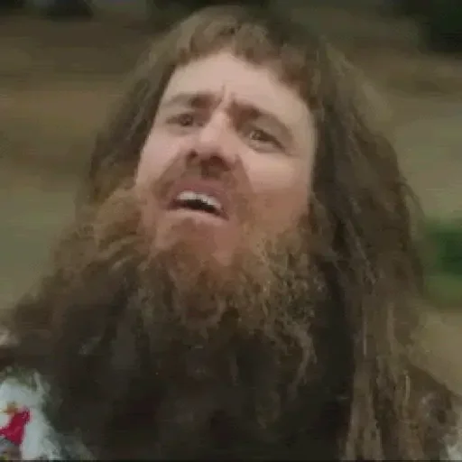 Homem com cabelo e barba castanhos, expressão de surpresa ou choque, boca aberta.