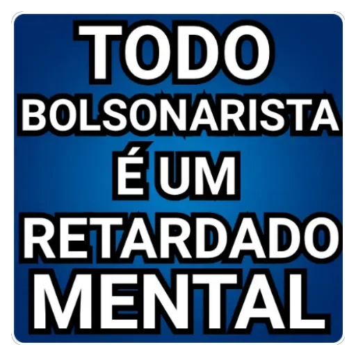 Um quadrado azul com texto branco em negrito que diz 'TODO BOLSONARISTA É UM RETARDADO MENTAL'.