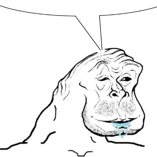 Um desenho de um macaco com expressão facial triste e um pouco de saliva azul saindo da boca, com um balão de fala vazio.