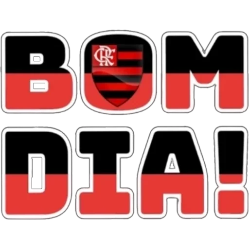Um sticker com as letras 'BOM DIA!' em grande escala, com as cores preto e vermelho, e um escudo de time de futebol no 'O'.