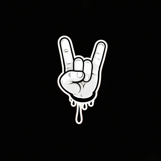 Mão fazendo o gesto de chifres com os dedos indicador e mindinho para cima e os outros para baixo, com um contorno branco e líquido branco pingando da palma, em fundo preto.