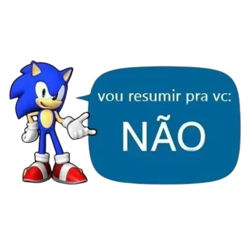 Sonic, o ouriço azul, está ao lado de uma bolha de fala azul com o texto 'vou resumir pra vc: NÃO'.
