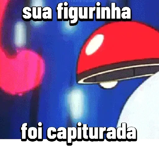Uma figurinha de um pokébola vermelho com texto 'sua figurinha foi capturada' em cima e em baixo, respectivamente.