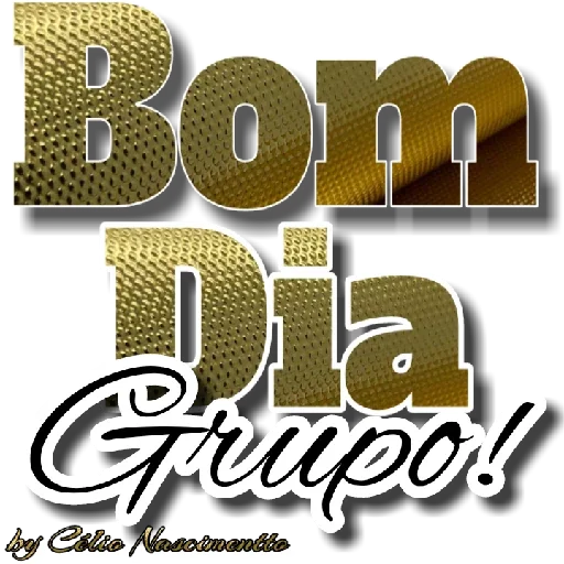 Um sticker com o texto 'Bom Dia Grupo!' em letras grandes e douradas, com uma fonte decorativa. Abaixo do texto principal, há uma assinatura em letra cursiva que diz 'by Oline Handwritten'.