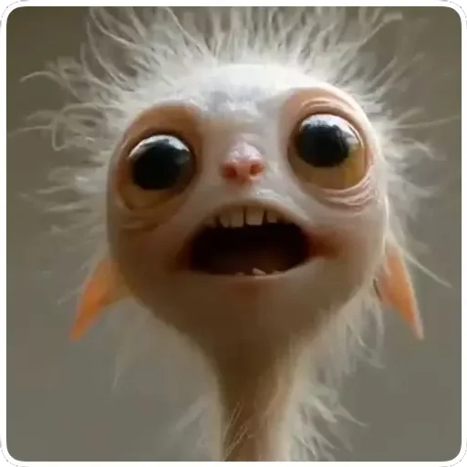 Um monstro branco com olhos grandes e cabelo espetado, parecendo surpreso ou assustado.
