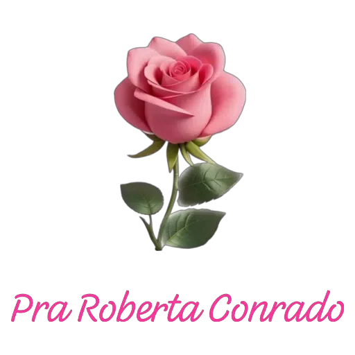 Uma rosa rosa com folhas verdes e o texto 'Pra Roberta Conrado' em rosa.