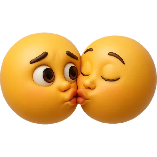 Dois emojis amarelos se beijando, um com expressão surpresa e o outro com os olhos fechados.