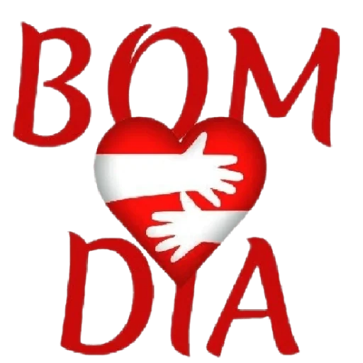 Um coração vermelho com as mãos no centro e a bandeira da Suíça, com o texto 'BOM DIA' em letras grandes vermelhas.