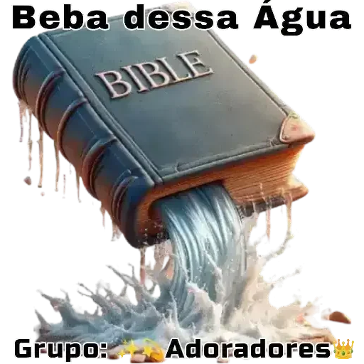 Uma Bíblia com água jorrando de dentro, com gotas caindo ao redor. O texto 'Beba dessa Água' está acima e 'Grupo: Adoradores' abaixo.