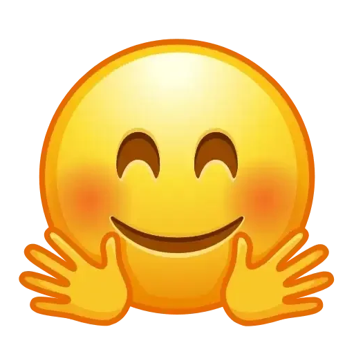 Um emoji de rosto amarelo com sorriso largo e bochechas rosadas, mãos ao lado do rosto com expressão de vergonha ou surpresa feliz.