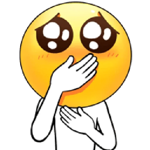 Um emoji amarelo com expressão de surpresa e vergonha, mãos sobre a boca e o peito.
