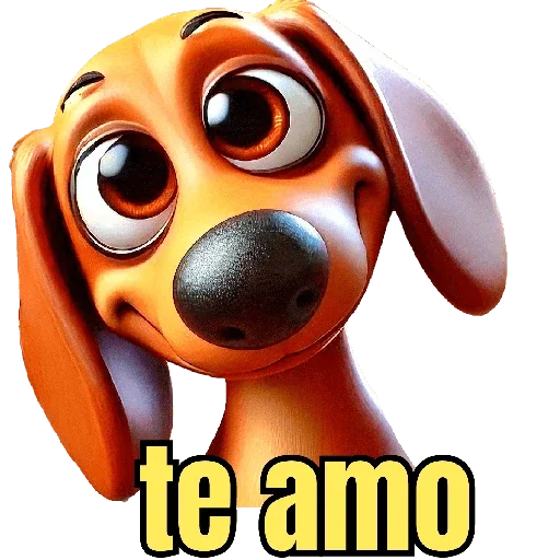 Cachorro de olhos grandes e orelhas caídas com a expressão surpresa, dizendo 'te amo' em letras amarelas.