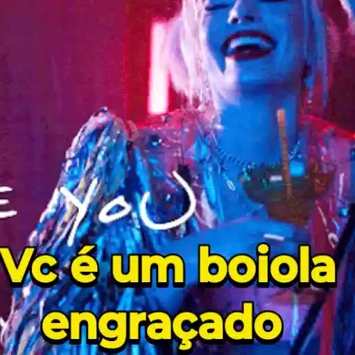 Uma mulher loira com uma jaqueta brilhante aparece em um fundo rosa e roxo, com o texto 'Vc é um boiola engraçado' em amarelo e 'YOU' em branco.