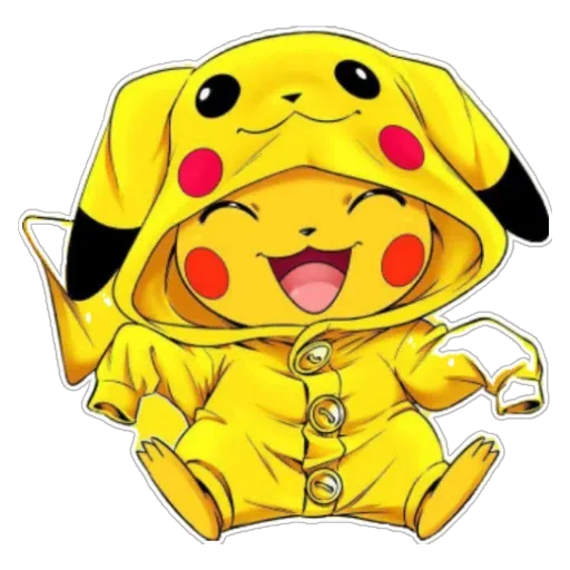 Pikachu vestindo uma roupa de cachorro amarelo, com expressão feliz e língua para fora.