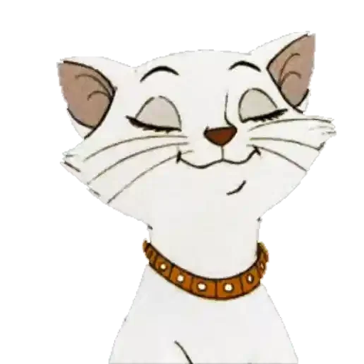 Gato branco com olhos fechados e colar marrom com pedras brancas, parecendo feliz ou sonhando.