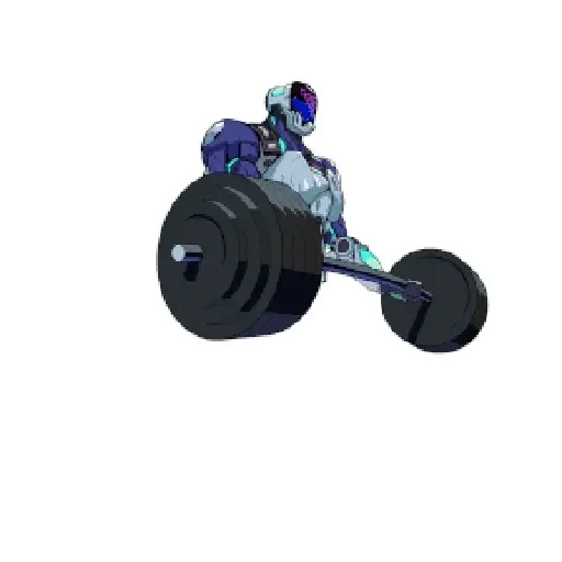 Personagem de anime com capacete azul e roupa roxa pilotando um triciclo com rodas grandes