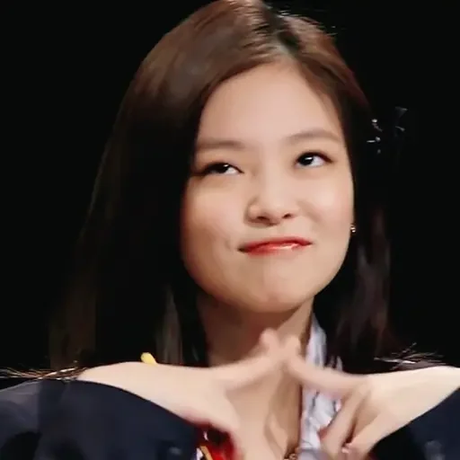 Uma jovem mulher com cabelo castanho e olhos castanhos fazendo um gesto com as mãos, parecendo sorrir levemente.