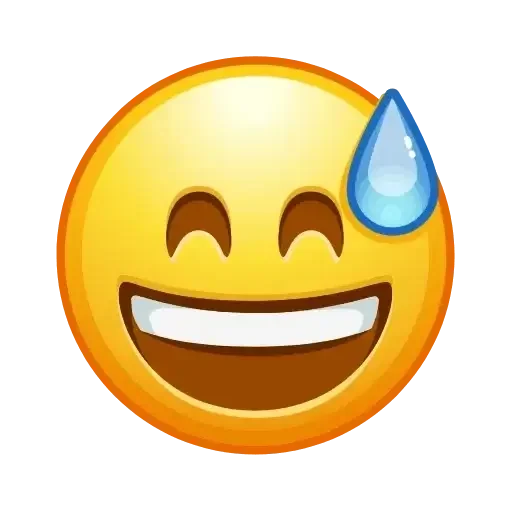 Um emoji de sorriso amarelo com uma gota de suor na testa, representando alívio ou alegria.