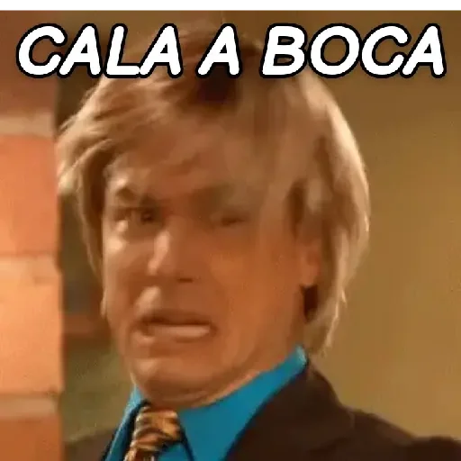 Homem com expressão de desaprovação ou surpresa, usando um terno e gravata, com o texto 'CALA A BOCA' sobreposto.