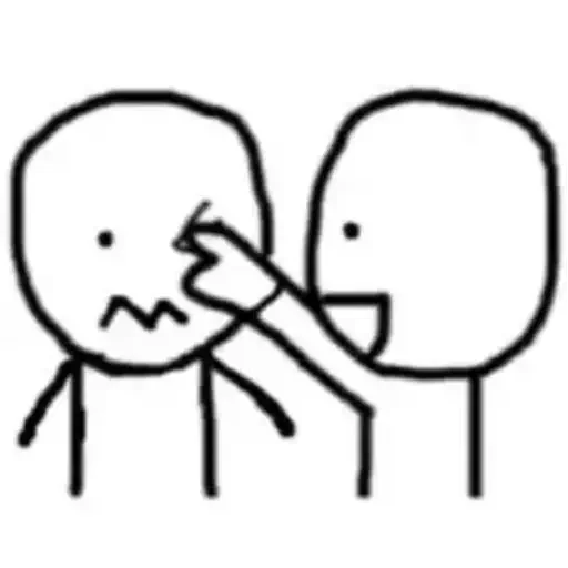 Dois personagens de desenho simples, um com expressão de dor e o outro apontando para o olho do primeiro.