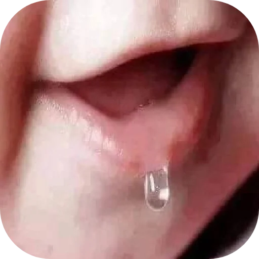 Um close-up de uma boca com um piercing e um brilhante cristalino pendurado.