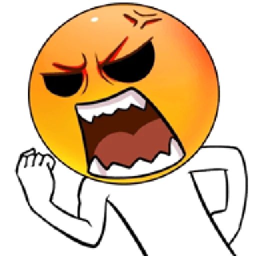Um emoji amarelo com expressão de raiva, mostrando os dentes e com as mãos levantadas.