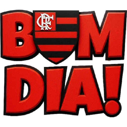 Um sticker com as letras 'BEM DIA!' em vermelho e o escudo do Flamengo ao lado de 'BEM'.