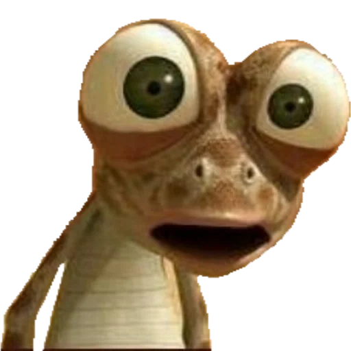 Um personagem de aparência de lagarto com olhos grandes e expressão surpresa