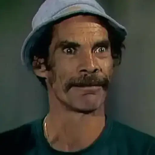 Homem com bigode e chapéu cinza, expressão séria, usando um colar e uma camisa escura.