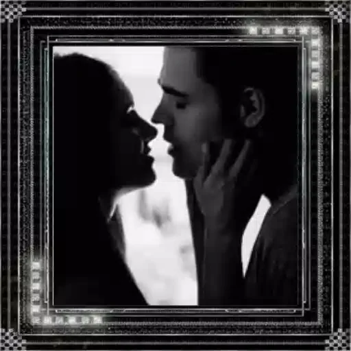 Um casal se beija em preto e branco, com as faces muito próximas. A mão do homem toca o rosto da mulher.