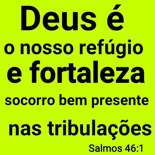 Um fundo verde brilhante com texto em preto. A frase 'Deus é o nosso refúgio e fortaleza socorro bem presente nas tribulações' é exibida de forma destacada, acompanhada de 'Salmos 46:1' na parte inferior.