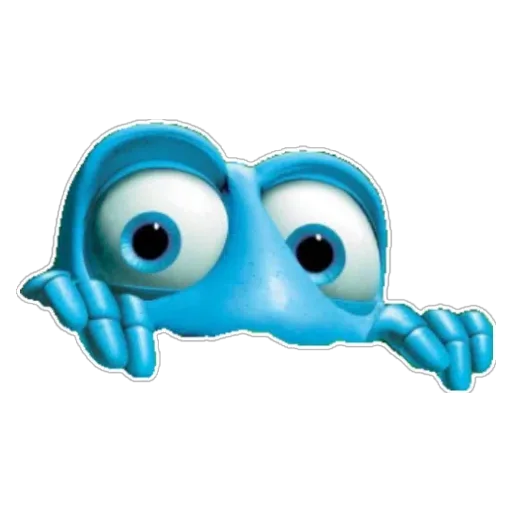 Um monstro azul com olhos grandes e esbugalhados, mãos levantadas e expressão surpresa.