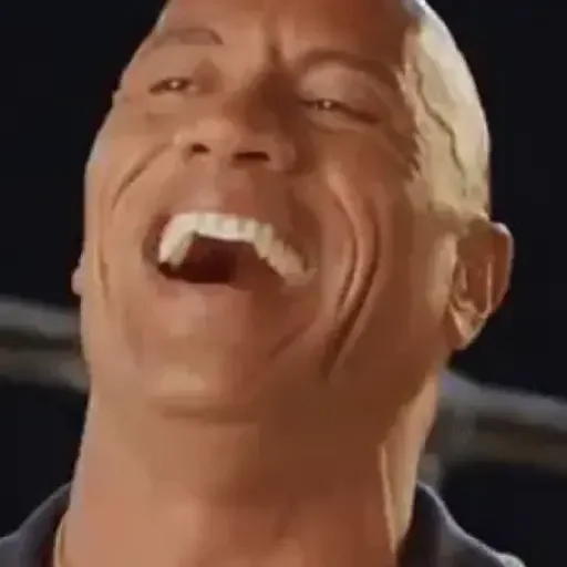 Rosto de Dwayne 'The Rock' Johnson com expressão de dor ou esforço, olhos fechados e dentes cerrados.