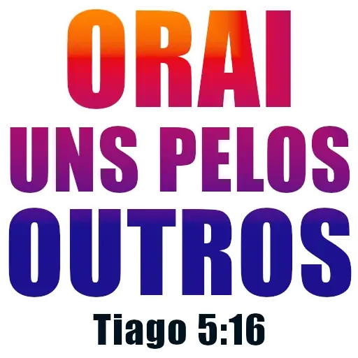 Uma figurinha com texto colorido que diz 'ORAI UNS PELOS OUTROS' em letras grandes e 'Tiago 5:16' em letras menores.