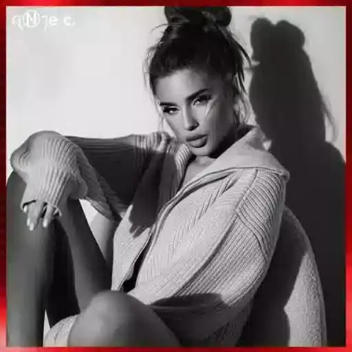 Mulher sentada com expressão séria, cabelo preso, usando um suéter, com sombra projetada ao fundo.