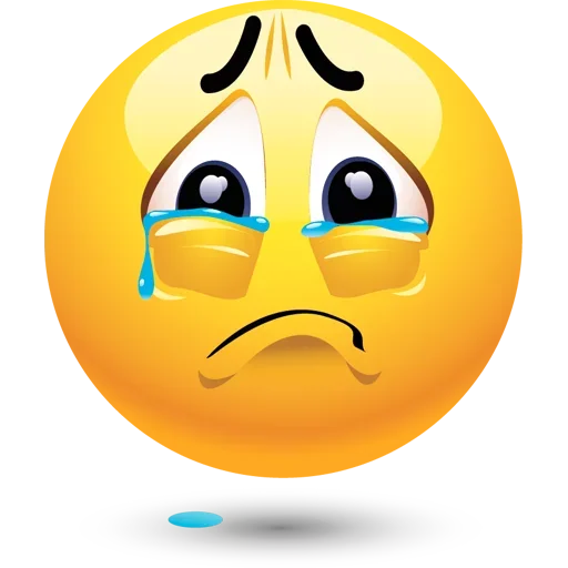 Um emoji amarelo chorando, com lágrimas azuis e uma expressão triste.