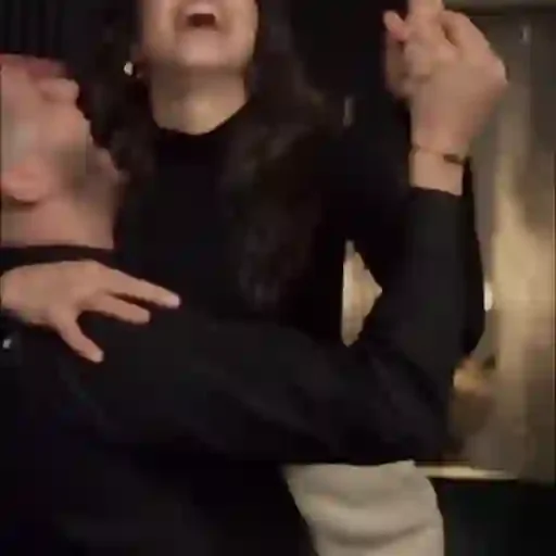 Um homem e uma mulher com roupas pretas, ele com um chapéu, ela com um bracelete, ambos com expressões de surpresa ou choque.