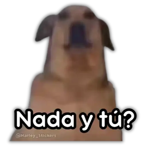 Um cachorro com a boca aberta e expressão surpresa, com o texto 'Nada y tú?' embaixo.