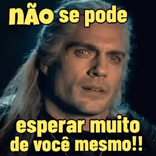 Imagem de um homem loiro com expressão séria e cabelos longos, com o texto 'não se pode esperar muito de você mesmo!!' em amarelo.