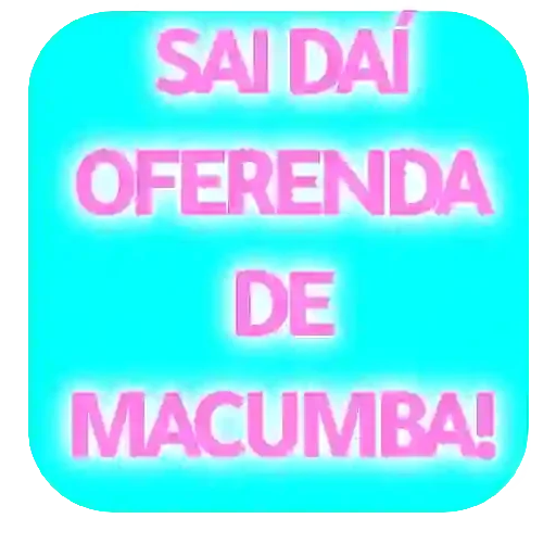 Um quadrado azul-turquesa com as palavras 'SAI DAÍ OFERENDA DE MACUMBA!' em letras rosa.