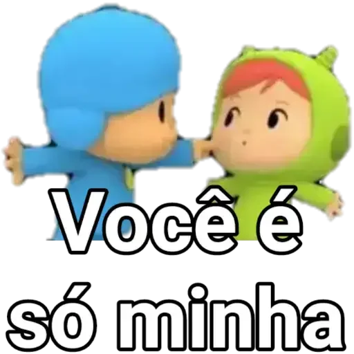 Dois personagens de desenho animado, um de azul e outro de verde, com texto "Você é só minha"