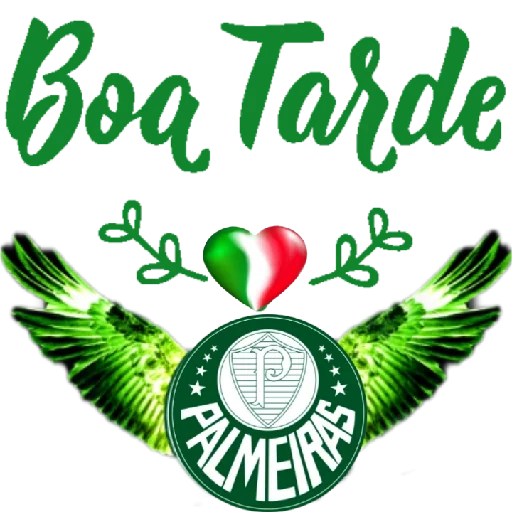 Uma saudação 'Boa Tarde' com um coração verde e vermelho e as cores do Palmeiras.