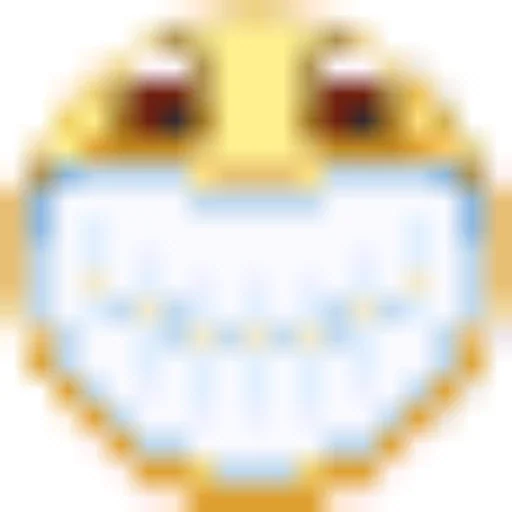 Rosto de um monstro ou animal com máscara de proteção, olhos castanhos e dentes brancos.