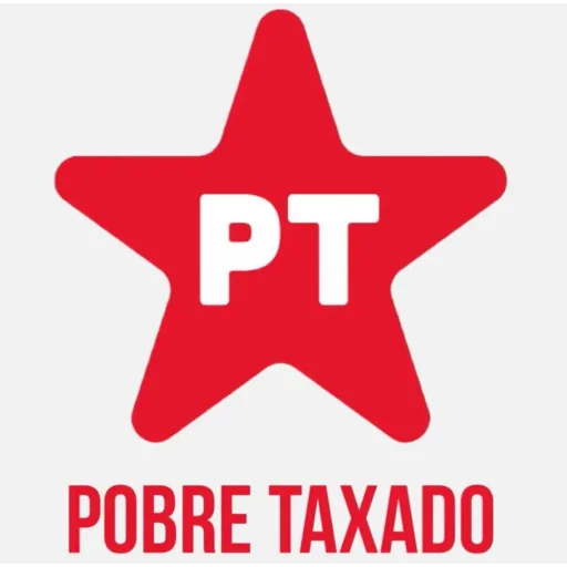 Uma estrela vermelha com as letras 'PT' no centro e o texto 'POBRE TAXADO' abaixo.